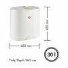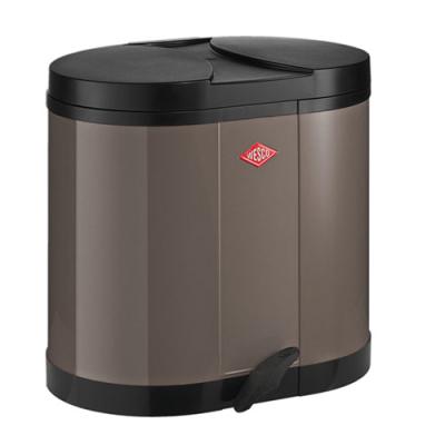Der Ökosammler 170 vereint praktische Funktionalität und formschönes Design. Er ist für den frei stehenden Gebrauch in der Küche vorgesehen und lässt sich beispielsweise neben der Spüle oder unter der Arbeitsplatte platzieren. Mit seiner zeitlosen, silberfarbenen Optik passt der Abfalleimer zu verschiedensten Kücheneinrichtungen. Für eine einfache Trennung von Haushaltsmüll und Biomüll ist er mit zwei Einsätzen ausgestattet, die ein Abfallvolumen von je 15 Litern haben. Ein durchgehender Deckel verschließt den Tretabfalleimer und schützt vor Gerüchen. Durch den Fußtritt lässt sich der Abfalleimer komfortabel ohne Einsatz der Hände bedienen. Mit seinem Korpus aus pulverbeschichtetem Stahlblech und dem Deckel und Tritt aus Kunststoff überzeugt er durch eine langlebige und stabile Qualität.