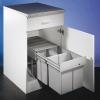 Das Mülltrennsystem Double Master 2 DS ist eine moderne Lösung für den Haushalt, um Abfall getrennt aufzubewahren. Dank der geringen Bauhöhe mit nur 330 mm eignet es sich ideal für Drehtürschränke, in denen Untertischgeräte wie beispielsweise ein Durchlauferhitzer oder ein Warmwasserspeicher vorhanden sind. Die beiden Abfallsammler haben ein Füllvolumen von jeweils 16 Litern. Mit Tragehenkeln ausgestattet, lassen sie sich leicht herausheben. Ein auf dem Gestell fixierter Gesamtdeckel sorgt für das angenehme Plus an Hygiene und reduziert die Geruchsentwicklung durch den Haushaltsmüll in der Küche. Das Set umfasst darüber hinaus den praktischen Rollwagen DS aus pulverbeschichtetem Stahlblech. Er ermöglicht die Verwendung des Mülltrennungssystems in Diagonal-Eckschränken. Der durchdacht zusammengestellte Einbau-Abfallsammler mit Vollauszug wird mit geringem Zeitaufwand direkt auf dem Schrankboden verschraubt.