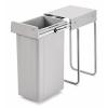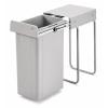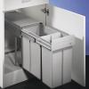 Das Mülltrennsystem ist in einer durchdachten Auszugstechnik speziell für Drehtüren konzipiert. Dem Eigenbedarf entsprechend kann das Modell mit einem Abfallvolumen von 26 Litern erworben werden. Der Einzelbehälter ist an den Rändern mit Griffmulden ausgestattet, die das Herausheben zur Entsorgung des Mülls erleichtern. Zur Grundausstattung gehört ein Gesamtdeckel, der auf dem Gestell befestigt wird und sich zum Reinigen mühelos abnehmen lässt. Der Vollauszug mit robusten Führungsschienen ist dank der Griffleiste im Frontbereich einhändig bedienbar. Die Montage des Mülltrennungssystems erfolgt unkompliziert auf dem Schrankboden.