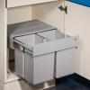 Das Mülltrennsystem Trio Shorty für Drehtür-Küchenschränke ist mit seiner geringen Einbauhöhe von 345 mm eine hervorragende Lösung für eine raumsparende Lagerung von Küchenresten. Dank des Abstands zur Arbeitsplatte bleibt dabei genügend Platz für die Integration des Siphons und der Wasseranschlüsse. Das Abfalleiner-Set umfasst zwei Behälter mit jeweils 7,5 Liter und einen größeren Mülleimer mit 15 Liter und wird damit dem üblichen Anspruch kleinerer Haushalte gerecht. Das tragende Gestell ist mit einem übergreifenden Deckel ausgestattet, sodass alle Behälter zur gleichen Zeit abgedeckt sind. Die Reinigung des Abfallsammlers gestaltet sich mithilfe des Vollauszugs sehr einfach, da sich die Eimer mühelos entnehmen lassen. Die Montage des Mülltrennungssystems erfolgt auf dem Schrankboden.