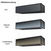 Standardmäßig einsetzbar für Raumhöhen bis 308 cm (bei Unterkante Haube: 157 cm)