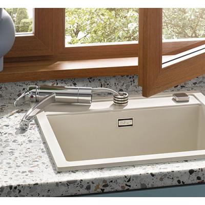 Ideal für die Vorfensterinstallation eignet sich die kippbare Küchenarmatur Fuoco 5 aus der Reihe Linea. Sie fügt sich mit zeitloser Präsenz in jede Küchengestaltung ein. Das Besondere: Mit einem Handgriff lässt sich der gesamte Körper vom Sockelelement trennen und auf die Seite legen, sodass der Fensterflügel nach innen geschwenkt werden kann. Darüber hinaus besticht die Fensterarmatur durch ihr ausgewogenes Design und den technischen Bedienkomfort mit einem zentral angeordneten Griffhebel. Zudem lässt sich der lange, elegant nach oben gewölbte Auslauf um 360° schwenken. Der Einhebelmischer zeichnet sich durch seine robuste und langlebige Materialqualität aus. Dabei kann die Auswahl aus unterschiedlichen Oberflächenausführungen erfolgen. Diese erweisen sich im täglichen Gebrauch als widerstandsfähig und pflegeleicht. Die Leichtgängigkeit ermöglicht eine hochwertige Kartusche, die über keramische Dichtungen verfügt. Sie sorgt für eine präzise Temperaturmischung und regelt die gewünschte Durchflussmenge. Vorgesehen ist die Hochdruckarmatur zur einfachen Montage, die je nach Spüle entweder auf dem Beckenrand oder auf der Arbeitsplatte vorgenommen werden kann.