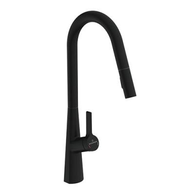 mit schwenk-/herausziehbarem (Strahl/Brause umstellbar), seitlichem Hebel, Keramikkatusche.