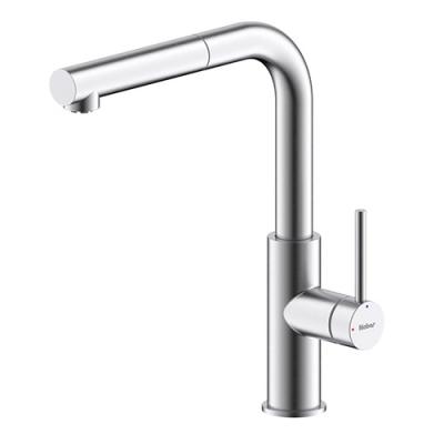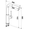 Einhebelmischer. Mit schwenk-/herausziehbarem Auslauf, seitlichem Hebel und Keramikkartusche.