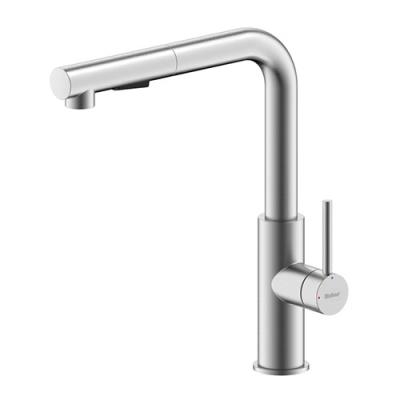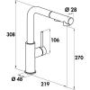 Einhebelmischer. Mit schwenk-/herausziehbarer Schlauchbrause (Strahl/Brause umstellbar), seitlichem Hebel, Laminarstrahlregler und Keramikkartusche.