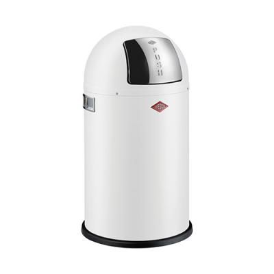 Der Abfalleimer fasst 22 Liter - ausreichend für den Single- oder Pärchen-Haushalt. Der Müll wird durch die Edelstahlklappe mit einem einfachen Druck in den Mülleimer hinein geworfen und dort im Einsatz aus Metall geruchssicher verstaut. Der runde Abfalleimer aus hochwertigem pulverbeschichtetem Stahlblech ist der kleine Bruder vom Pushboy® - dem Klassiker aus dem Hause Wesco, dessen Retro-Design schon lange bekannt ist und Maßstäbe gesetzt hat. Ein Kunststoffrand am Korpus schont den Fußboden. Der Leitring im Innern verhindert, dass Müll zwischen Korpus und Einsatz rutscht.