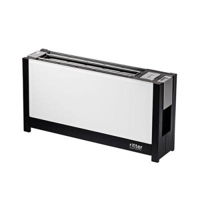 Mit nur knappen 9 cm Breite ist der elegante Toaster volcano5 von ritter unvergleichbar schmal. Er ist in drei Ausführungen mit edlen Glasfronten in schwarz, weiß und rot erhältlich.