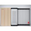 Die Box Pro Becken bieten eine funktionale und durchdachte Lösung für die Küche. Das im Lieferumfang enthaltene praktische Zubehörpaket mit Rollmatte, Schneidebrett und Abtropfbecken ermöglicht das Arbeiten auf drei verschiedenen Ebenen: Im Beckenboden kann Wasser angestaut, Obst und Gemüse gewaschen oder Geschirr gereinigt werden. Auf der Funktionsstufe im Becken bietet die hitzebeständige Rollmatte Platz für heiße Töpfe und Pfannen oder kann als Abtropffläche genutzt werden. Der Beckenrand dient als Ablage für das Schneidebrett und Abtropfbecken und sorgt für einen reibungslosen Ablauf bei der Lebensmittelzubereitung.