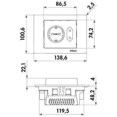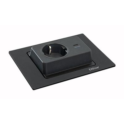 Das versenkbare Steckdosenelement Evoline® Spin USB C überzeugt durch durchdachtes Design und hohe Funktionalität für moderne Arbeitsbereiche. Durch eine manuelle Drehbewegung werden die Schukosteckdose und ein USB Charger Typ C freigelegt, während das Modul im Ruhezustand nahezu flächenbündig in der Arbeitsplatte verschwindet. Die Einbautiefe von nur 49 mm ermöglicht die Montage sogar über Auszugsschubladen, was flexible Einbausituationen fördert. Dank eines Kabelauslasses an der Unterseite sowie einer Netzanschlussleitung mit Schutzkontaktstecker gestaltet sich die Installation denkbar einfach. Mit erhöhtem Berührungsschutz ausgestattet, bietet dieses Element Sicherheit im Alltag. Die kompakte, eckige Form unterstützt eine saubere Leitungsführung und sorgt dafür, dass Technik dezent bleibt, aber dennoch jederzeit griffbereit ist. So ist der Evoline® Spin eine elegante und praktische Lösung zur optimalen Versorgung von Steckdosen direkt in der Oberfläche – ideal für eine aufgeräumte und zeitgemäße Ausstattung.