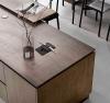 Steckdosenelement. 1-fach. Mit Doppel USB Charger (Ladestation). Geschlossen ist das Element fast eben mit der Arbeitsplatte. Durch Schieben des Deckels wird die Steckdose freigelegt.