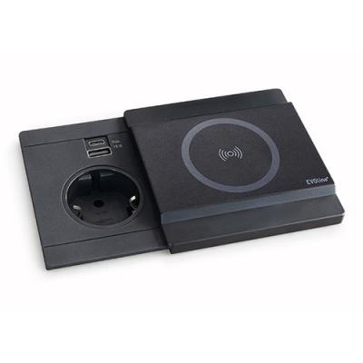 Das Steckdosenelement Evoline® Circle80 mit Schiebedeckel DisQ bietet eine durchdachte Lösung zur dezenten Integration von Energie- und Ladefunktionen in Arbeitsplatten. Der praktische Schiebedeckel schützt die Anschlüsse und ermöglicht zugleich die Nutzung der integrierten Induktionsladefläche für Qi-fähige Geräte, sodass Smartphones kabellos geladen werden können, ohne dass Kabel sichtbar liegen. Ergänzend lassen sich klassische Steckdose und Ladeanschlüsse flexibel nutzen. die kompakte Bauweise und der definierte Kabelauslass vereinfachen die Installation und sorgen für eine aufgeräumte Leitungsführung. Durch die Kombination aus Schutzabdeckung, induktivem Laden und Steckdosenfunktion bleibt Technik unauffällig, ist bei Bedarf aber sofort griffbereit ideal für moderne Küchen- und Arbeitsumgebungen, in denen Funktionalität und Ordnung gleichermaßen wichtig sind.