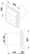 Edelstahl-Außenjalousie mit Rückstauklappe für Anschluss an Rundrohr.