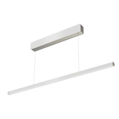 Pendelleuchte. Aluminiumgehäuse, edelstahlfarbig eloxiert, Abdeckung Acrylglas. Inkl. Konverter und Fernbedienung.