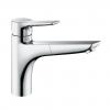 Einhebelmischer. Mit schwenkbarem Auslauf, geschlossenem Hebel und Keramikkartusche mit Heißwasserbegrenzung.