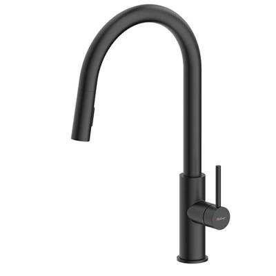 Einhebelmischer. Mit schwenk-/herausziehbarer Schlauchbrause (Strahl/Brause umstellbar), seitlichem Hebel, Laminarstrahlregler und Keramikkartusche.