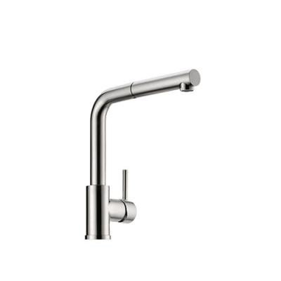 Einhebelmischer. Mit schwenk-/herausziehbarem Auslauf, seitlichem Hebel und Keramikkartusche.
