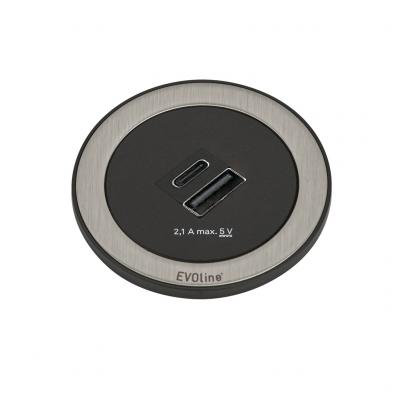Steckdosenelement. Doppel USB Charger A+C (Ladestation). Zum Einbau in Arbeitsplatte, Frontblende oder Seitenwand.