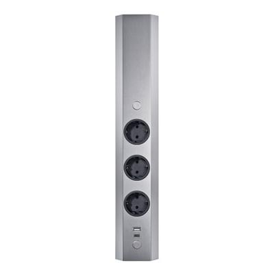 Die CON-AKTIV® Ecksteckdose Mira Eck small 1 überzeugt durch ihre kompakte Bauweise für die platzsparende Installation in der Raumecke - ob auf der Küchenarbeitsplatte oder unter dem Oberschrank. Mit ihrem schlanken und modernen Design setzt sie einen attraktiven Akzent in jeder Einrichtung. Durch das teleskopierbare Ausgleichsstück lässt sich die 3-fach-Steckdose optimal an die Höhe zwischen Wandschrank und Arbeitsplatte anpassen. Zur Ausstattung gehören vier Steckdosen, sodass mehrere Küchengeräte gleichzeitig wie Toaster, Mixer oder Wasserkocher angeschlossen werden können. Das Steckdosenelement lässt sich ohne großen Aufwand in der Ecke der Küchenarbeitsplatte oder unterhalb des Wandschrankes montieren. Für einen leichten Zugriff auf die Mehrfachsteckdose befindet sich der Kabelauslass hinten oben. Da das Eck-Steckdosenelement in unterschiedlichen Farben bestellbar ist, lässt es sich passend zum vorhandenen Küchenkonzept auswählen.